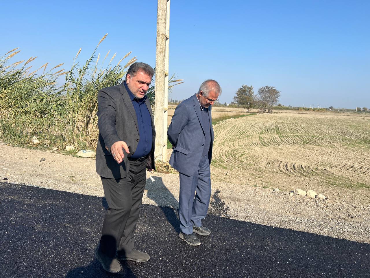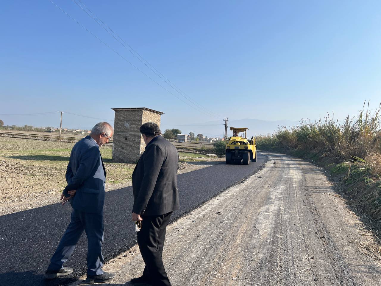 بازدید مهندس عبدالجلال ایری به اتفاق سرهنگ عمرانی مسئول بسیج سازندگی استان گلستان از اجرای عملیات آسفالت جاده دسترسی به امامزاده علی ابن طاهر مهترکلاته