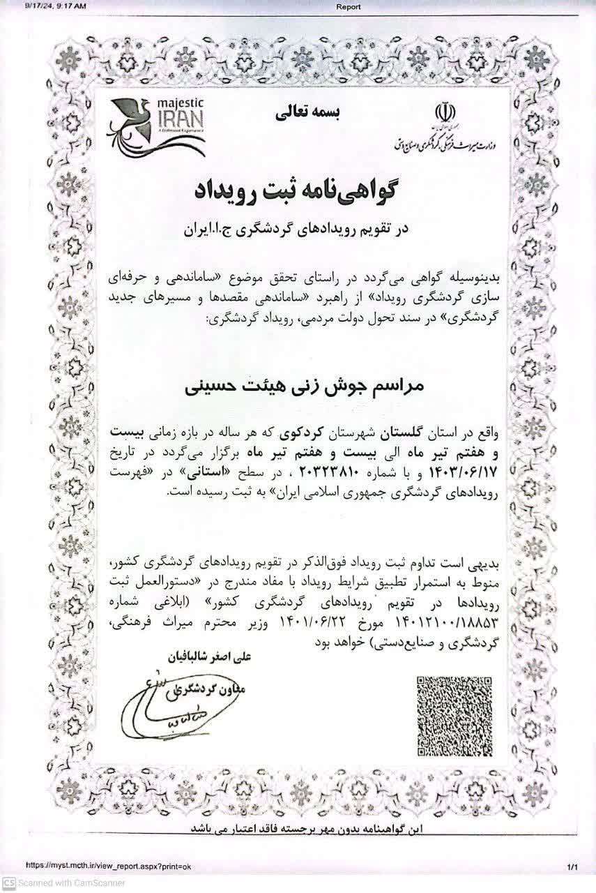 فرشته ترک گفت :مراسم جوش زدن سابقه ای دیرین در فرهنگ مردم داشته و حداقل بیش از ۱۵۰ سال قدمت دارد که به همت اداره میراث فرهنگی وگردشکری شهرستان کردکوی در تاریخ ۱۴۰۳/۰۶/۱۷ مراسم جوش زنی هیات حسینی خیابان پاسداران (خیابان گرگان ) این شهرستان با شماره ۲۰۳۲۳۸۱۰ به ثبت ملی رسید